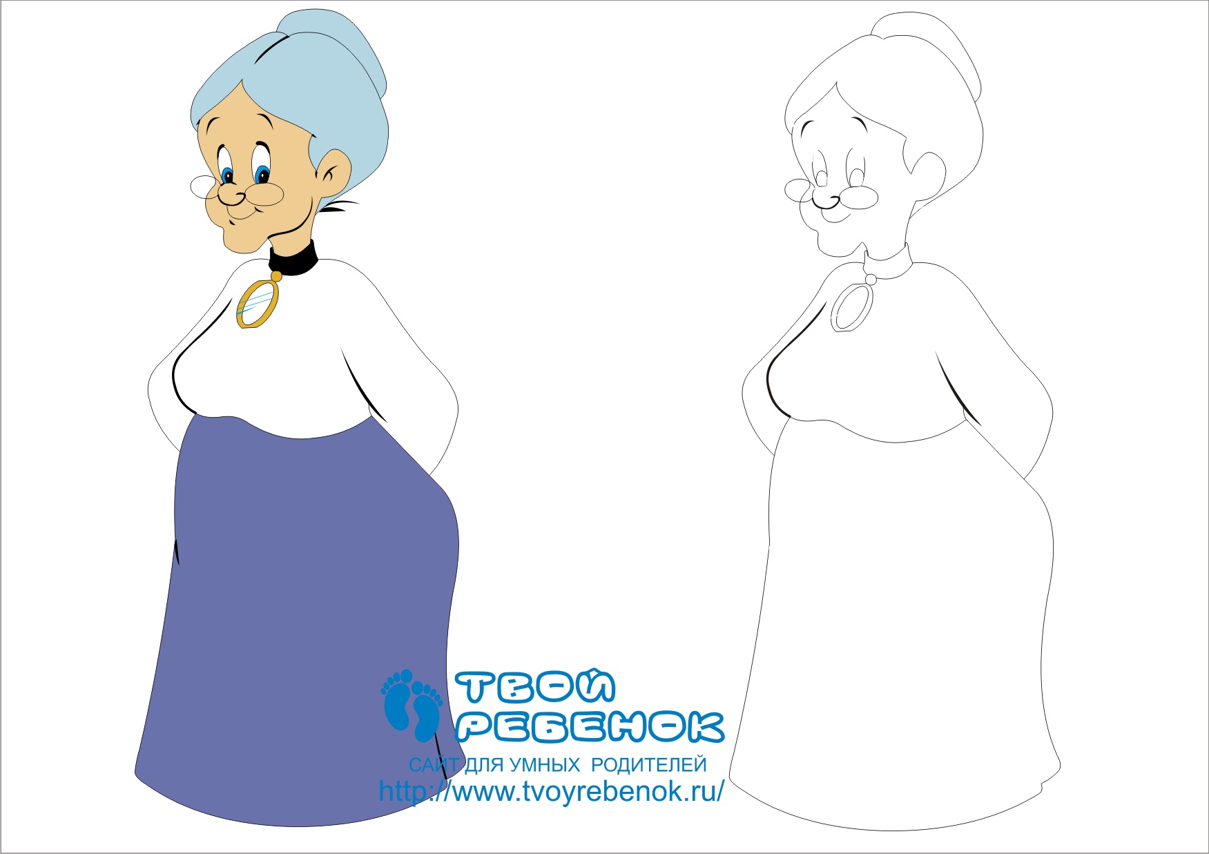 Розмальовка з картинкою бабусі для дітей. Скачайте розмальовку та роздрукуйте її на кольоровому принтері. Ви можете завантажити цю розмальовку безкоштовно. |