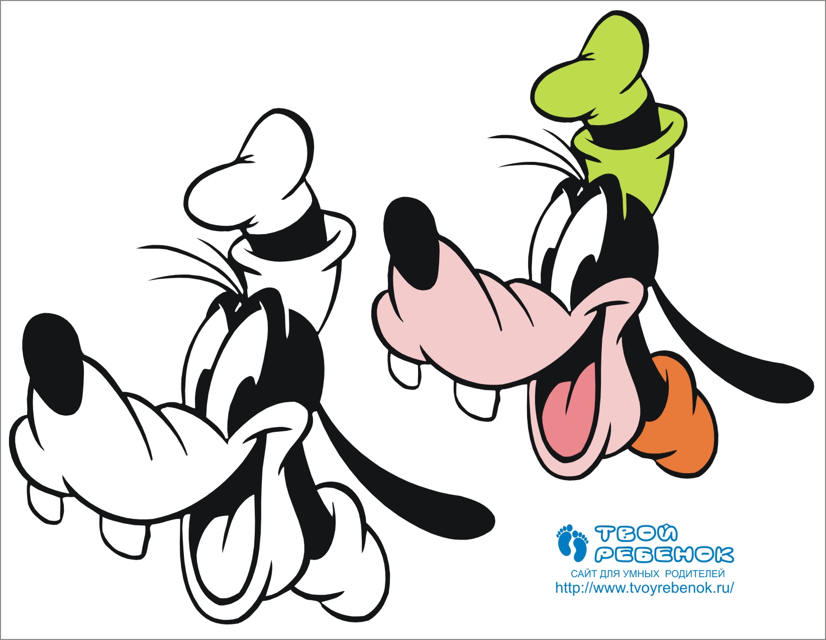 Картинки Гуффі (Дісней) для дітей. Скачайте розмальовку та роздрукуйте її на кольоровому принтері. Ви можете завантажити цю розмальовку безкоштовно.