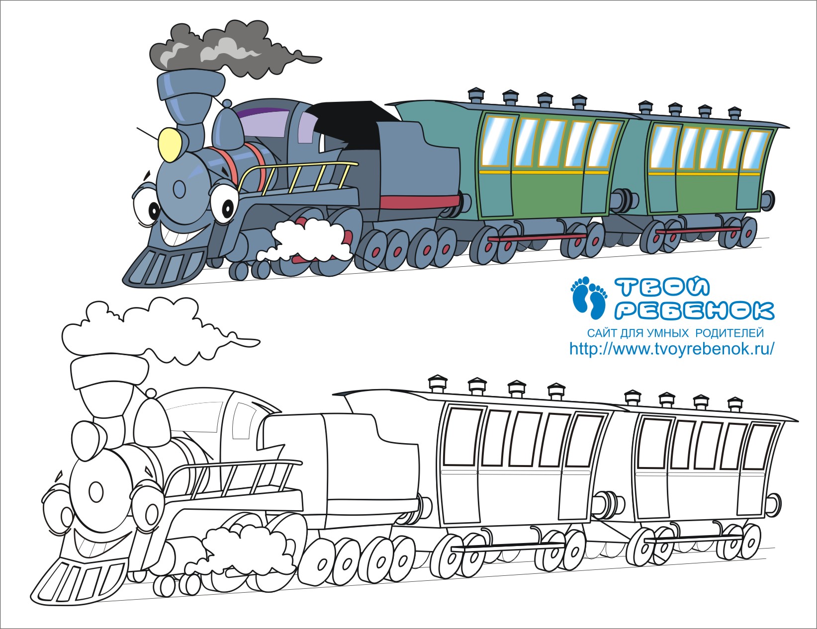 Розмальовка паровоз, яку можна завантажити безкоштовно на дитячому сайті Твій ребенок.ру! Скачайте розмальовку та роздрукуйте її на кольоровому принтері! |