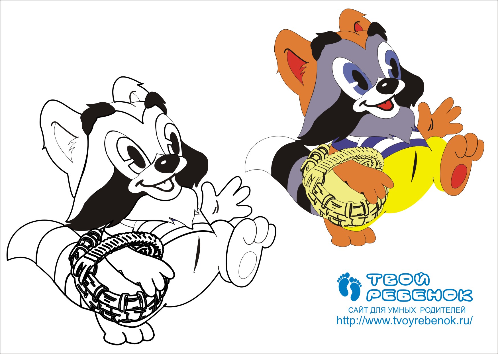 Розмальовка Крихта Єнот для хлопчиків і дівчаток! Скачайте розмальовку та роздрукуйте її на кольоровому принтері прямо зараз!
