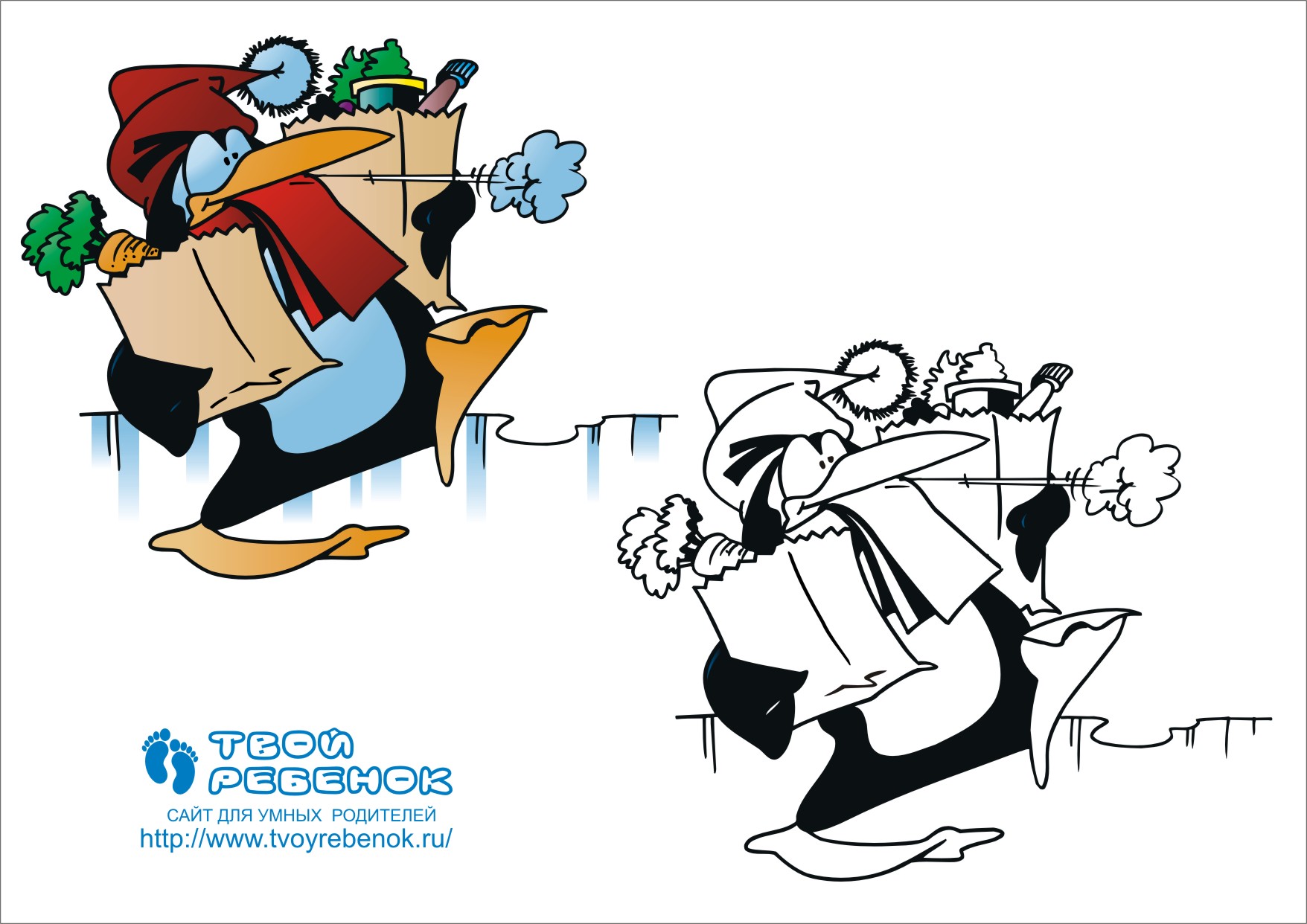 Розмальовка Пінгвін від дизайнера дитячого сайту Твій ребенок.ру, яку можна скачати безкоштовно! |