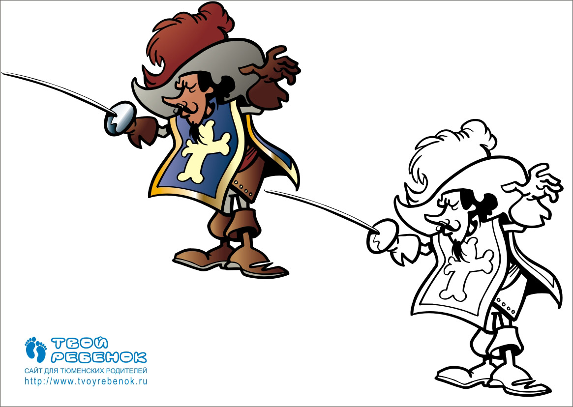 Розмальовка Мушкетер для дітей. Скачайте розмальовку та роздрукуйте її на кольоровому принтері. Ви можете завантажити цю розмальовку безкоштовно. |