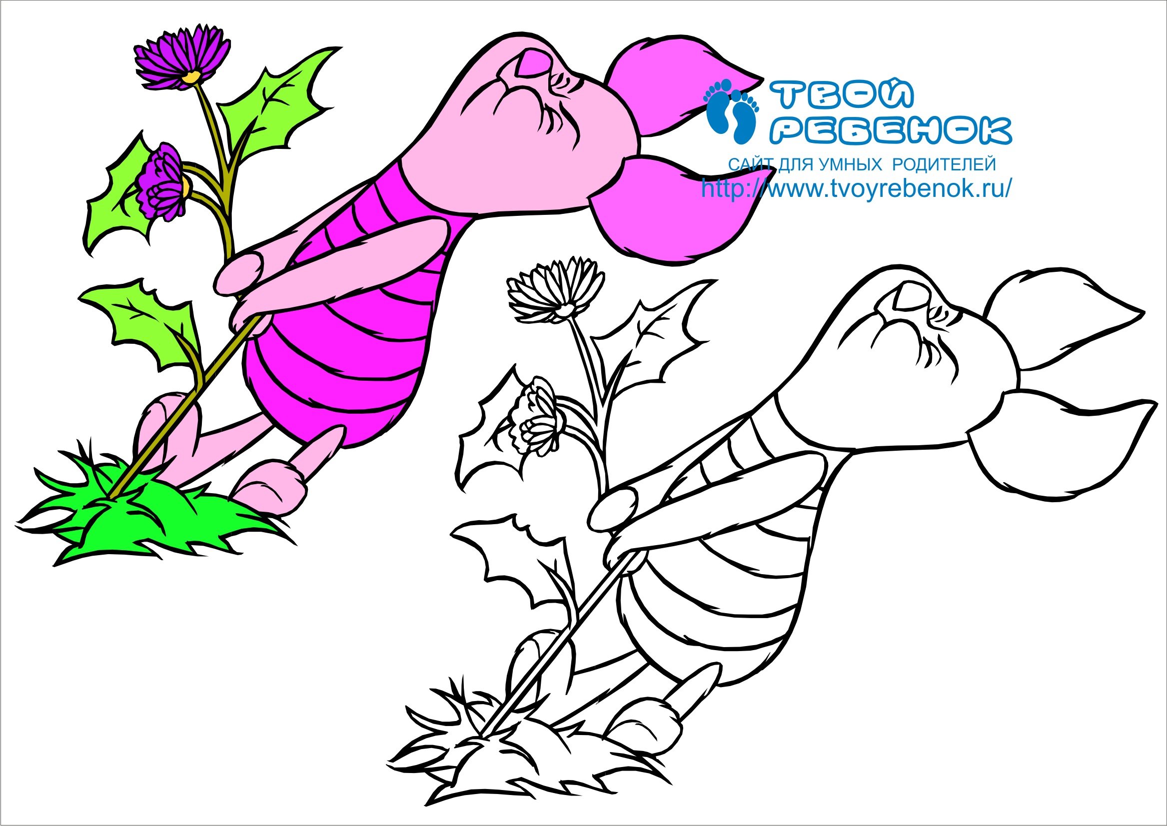 Розмальовка для дітей "П'ятачок рве квітка". Ви можете завантажити цю розмальовку безкоштовно і роздрукувати її на кольоровому принтері. |