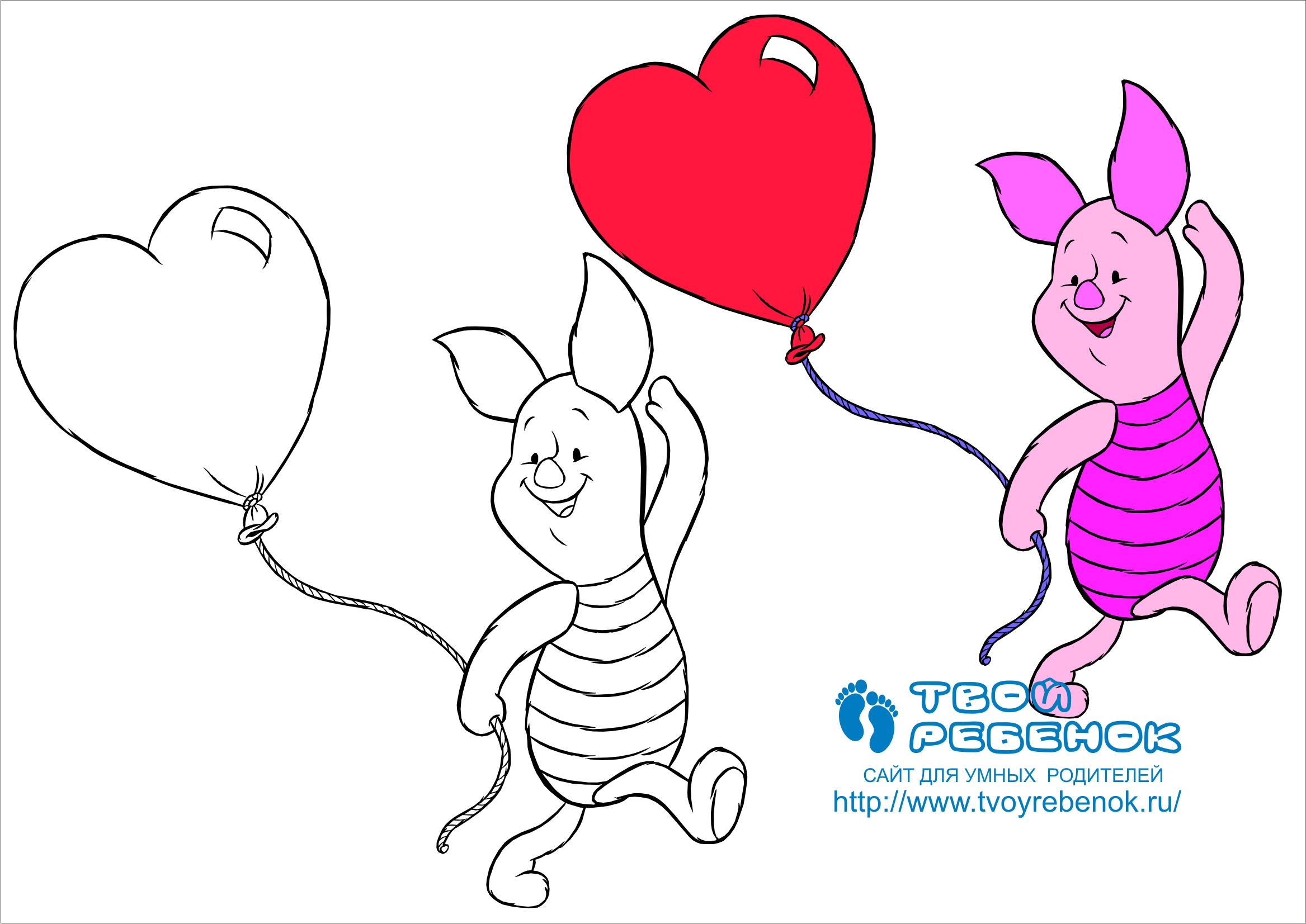 Розмальовка для дітей "П'ятачок і кулька". Ви можете завантажити цю розмальовку безкоштовно і роздрукувати її на кольоровому принтері. |