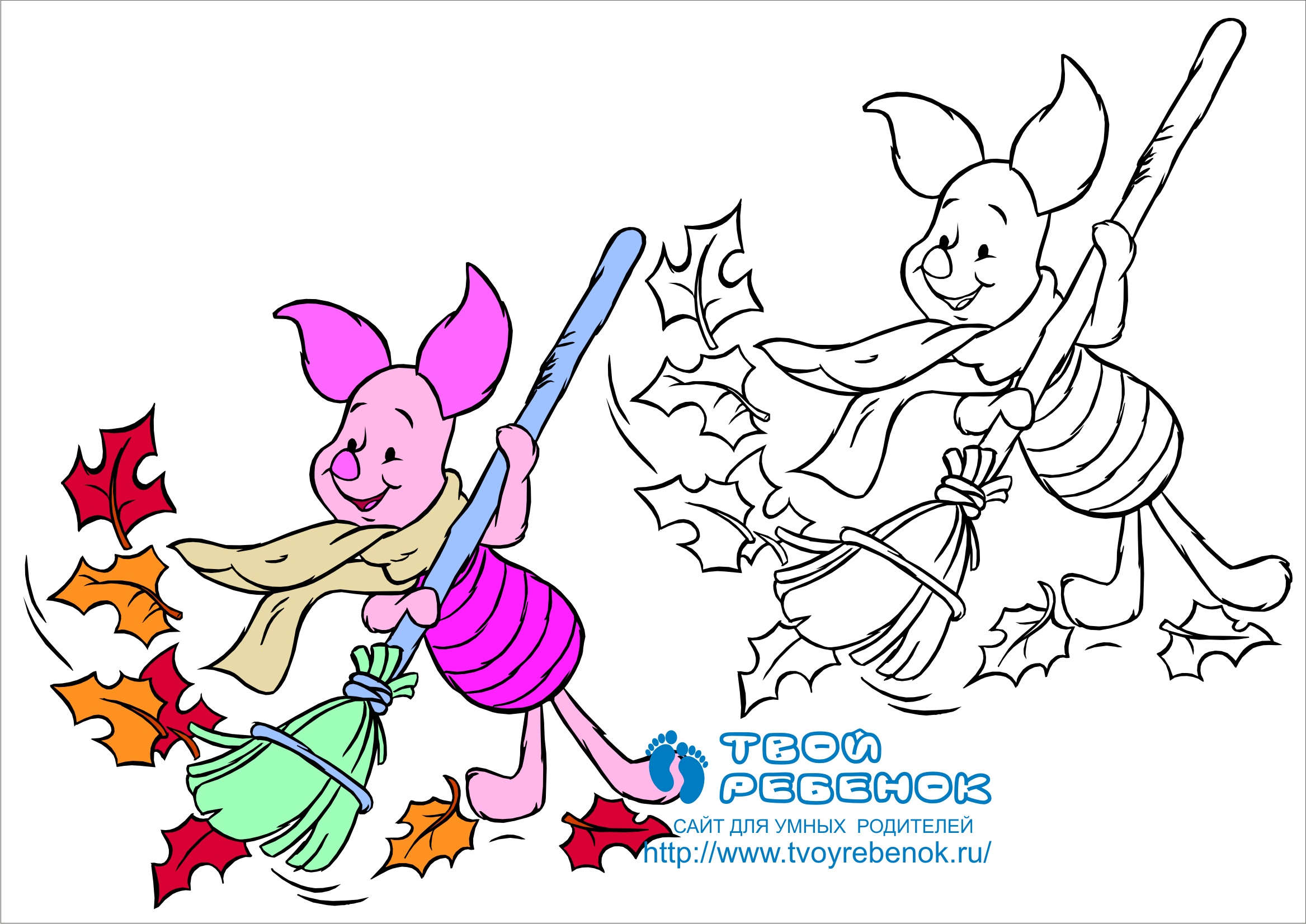 Розмальовка для дітей "П'ятачок з мітлою". Ви можете завантажити цю розмальовку безкоштовно і роздрукувати її на кольоровому принтері. |