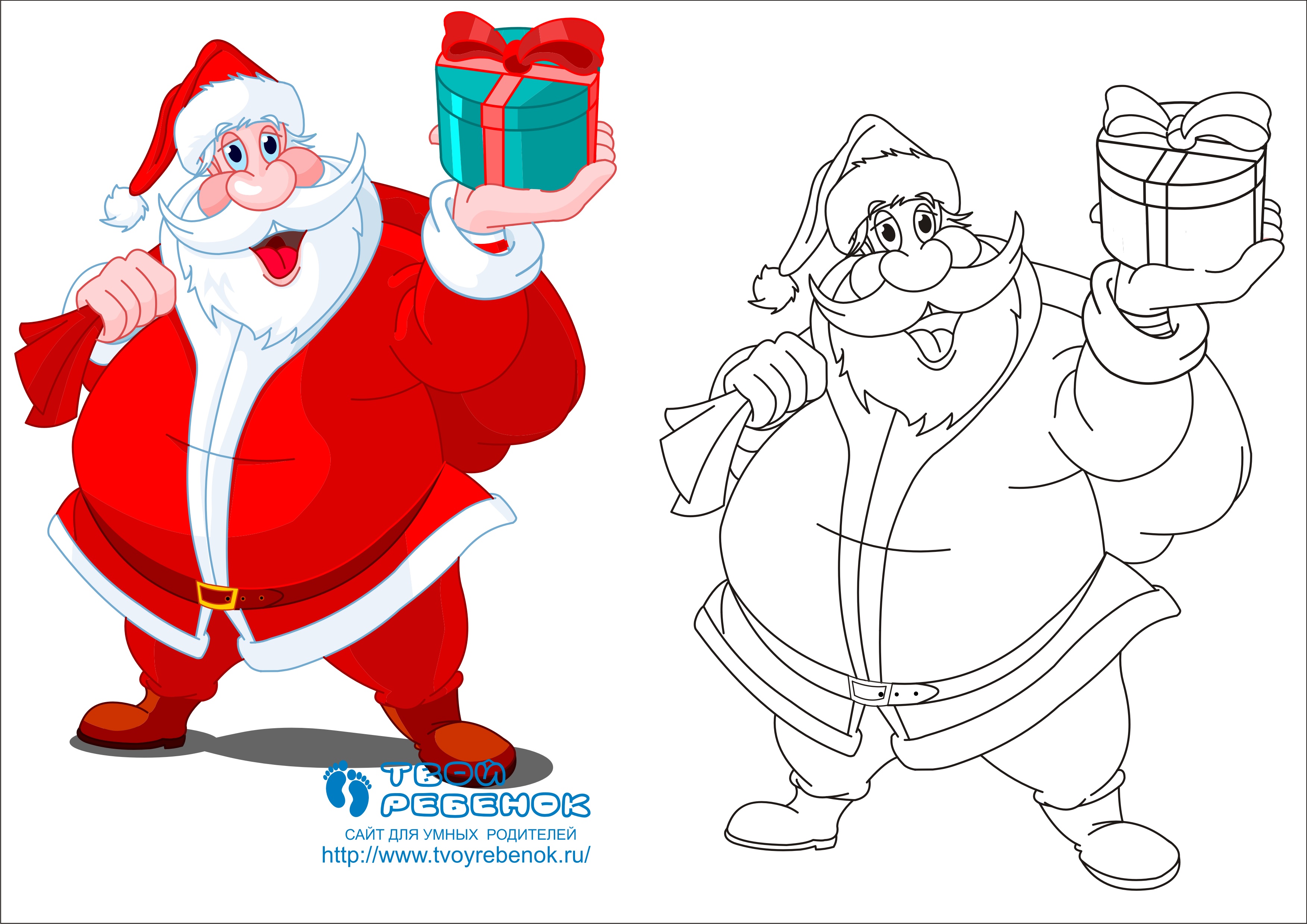 Розмальовка для дітей "Санта Клаус". Ви можете завантажити її безкоштовно і роздрукувати її на кольоровому принтері прямо зараз! |