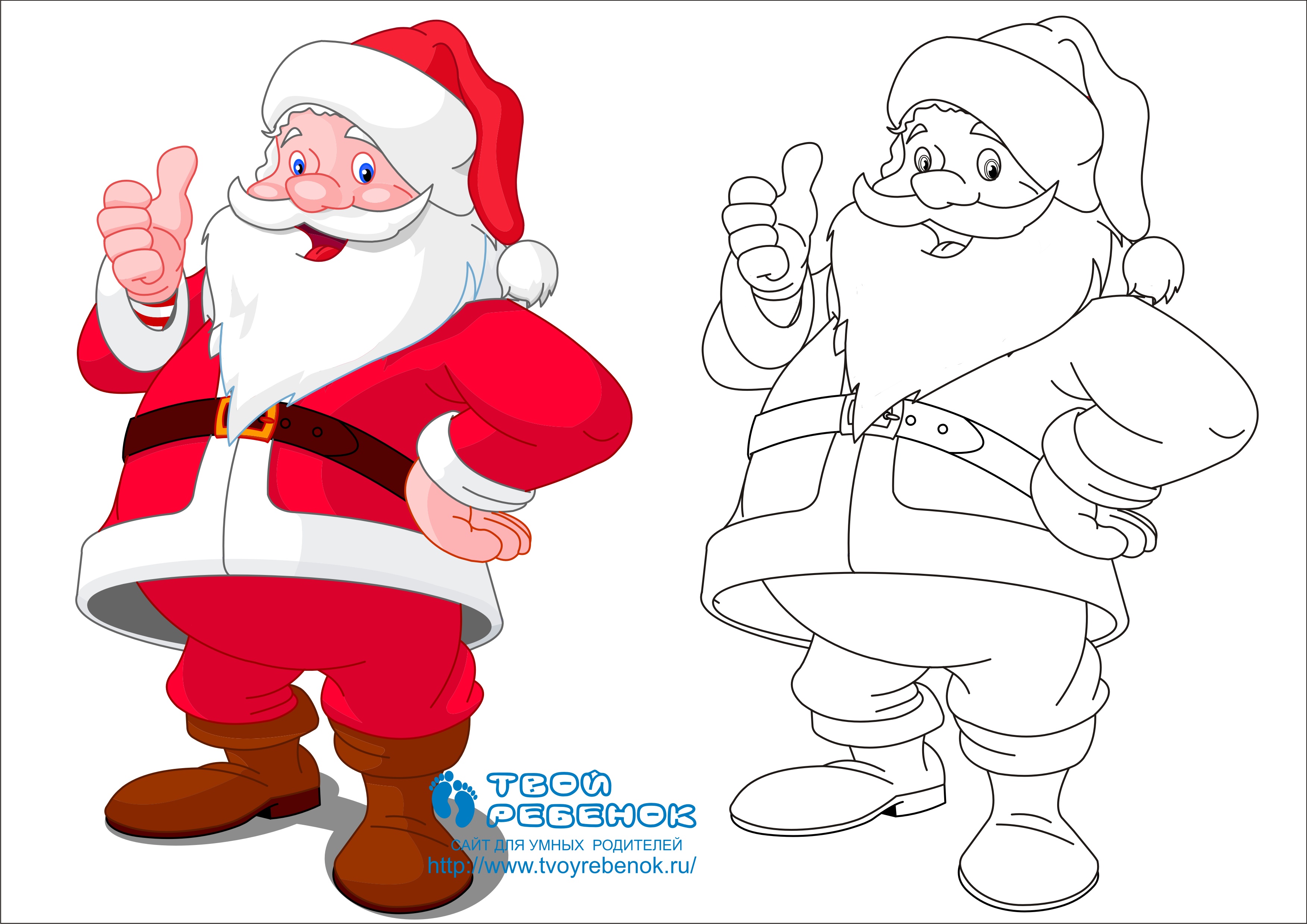 Кольорова розмальовка з Сантою. Ви можете завантажити її безкоштовно і роздрукувати її на кольоровому принтері. |