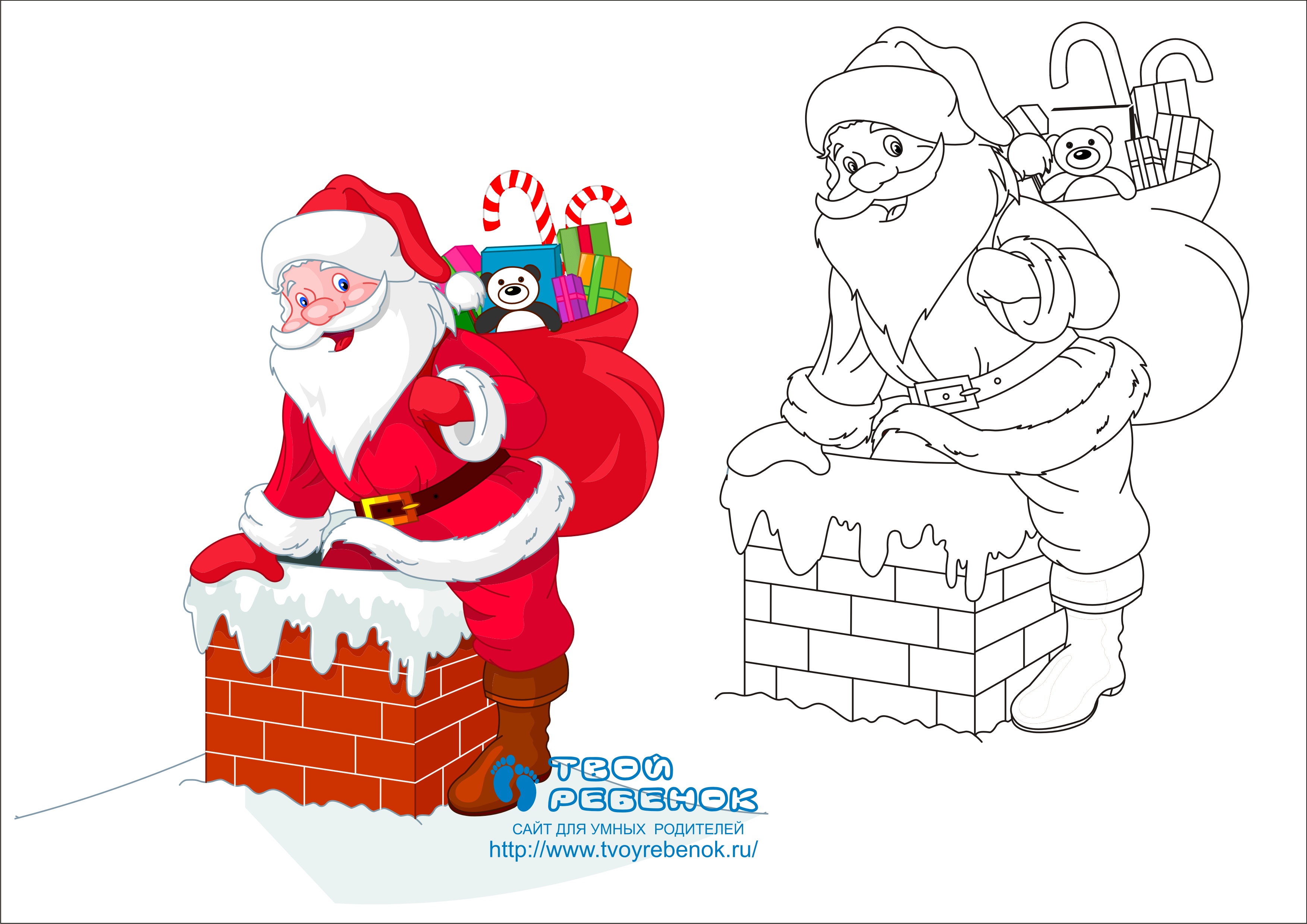 Кольорова розмальовка з Санта Клаусом. Ви можете завантажити її безкоштовно і роздрукувати її на кольоровому принтері. |