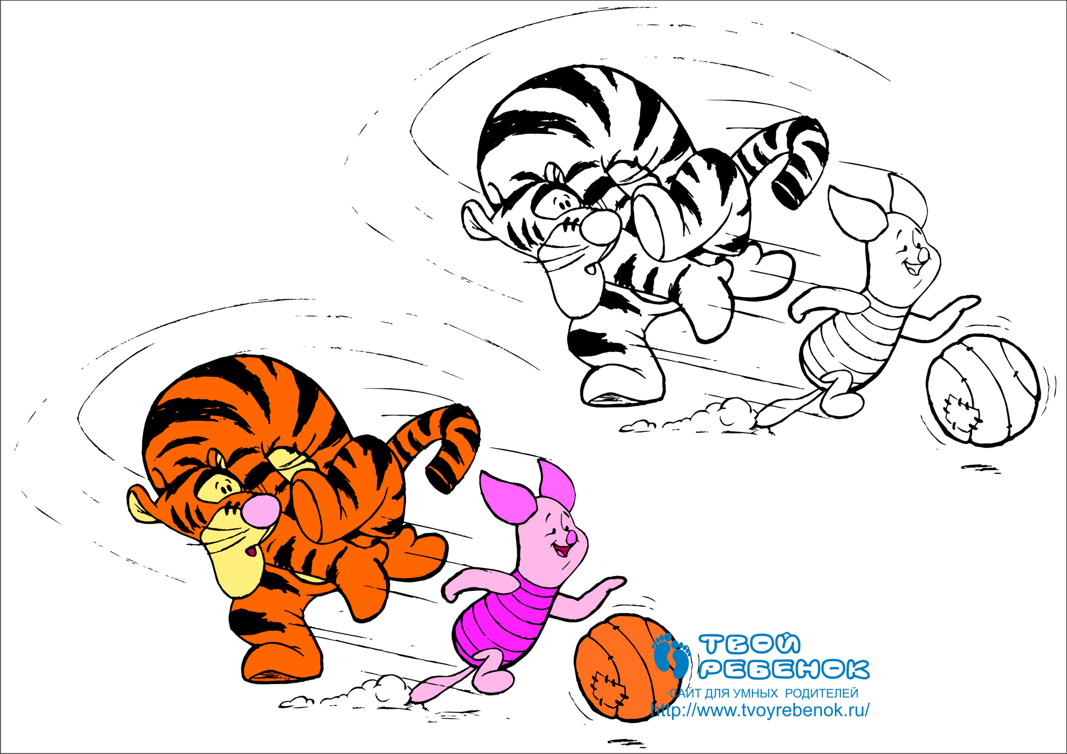Розмальовка для дітей "Пяточок біжить за м'ячем". Ви можете завантажити цю розмальовку безкоштовно і роздрукувати її на кольоровому принтері. |
