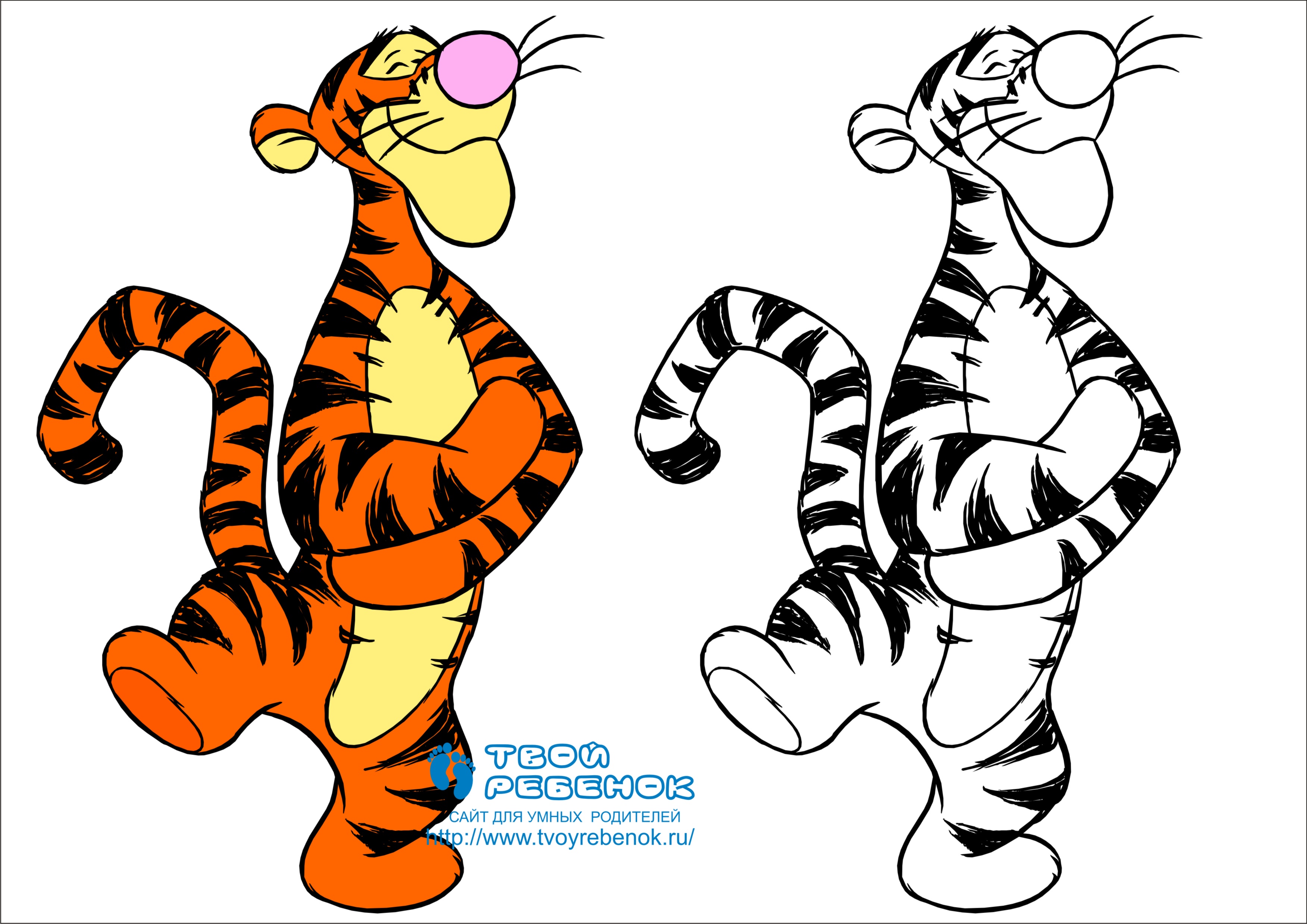 Розмальовка для дітей "Тигра стоїть на одній нозі". Ви можете завантажити цю розмальовку безкоштовно і роздрукувати її на кольоровому принтері. |