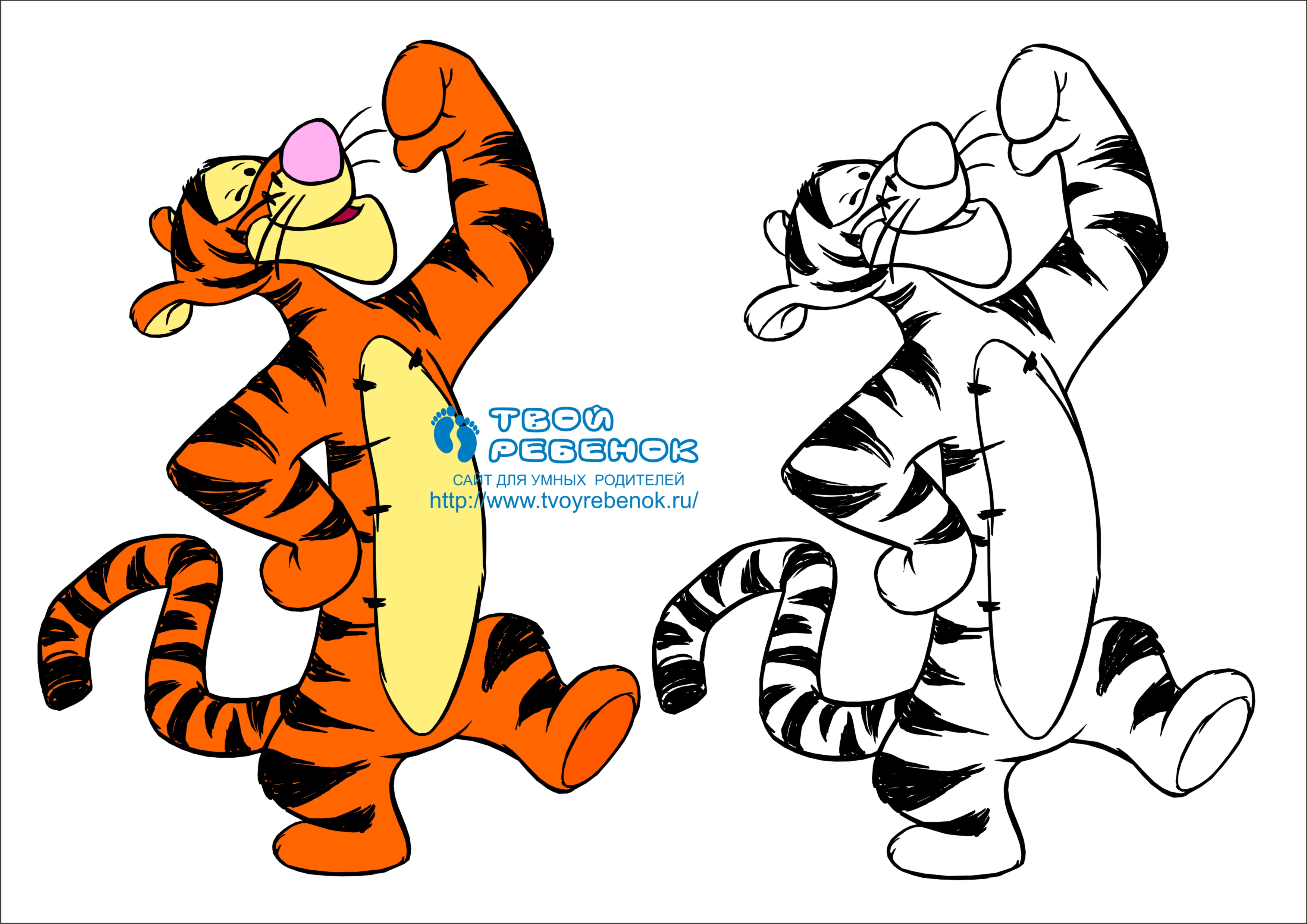 Картинка тигра для дітей від дизайнера сайту Твій ребенок.ру. Ви можете завантажити цю розмальовку безкоштовно і роздрукувати її на кольоровому принтері. |