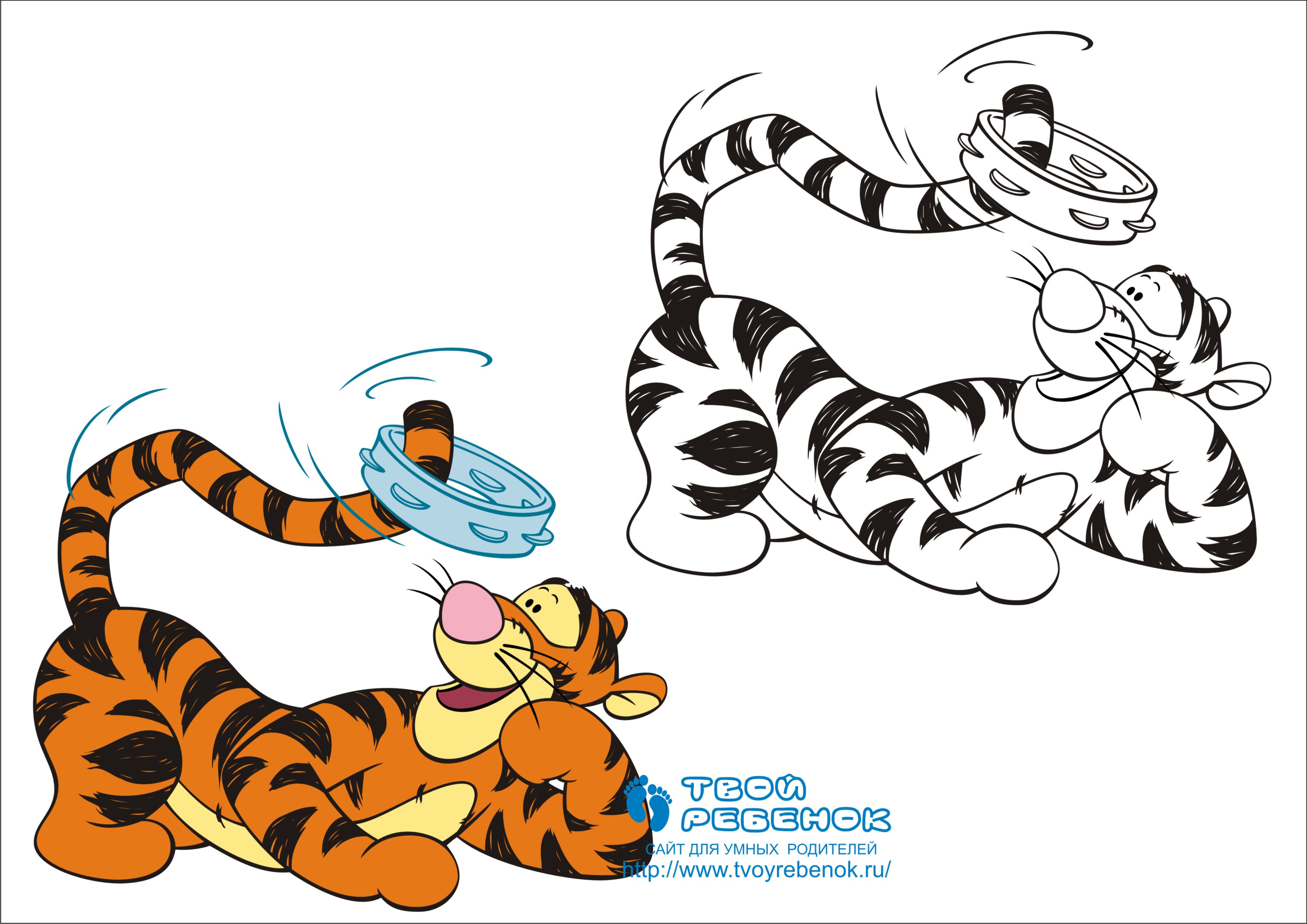 Розмальовка для дітей "Тигра грає в бубон". Ви можете завантажити цю розмальовку безкоштовно і роздрукувати її на кольоровому принтері. |