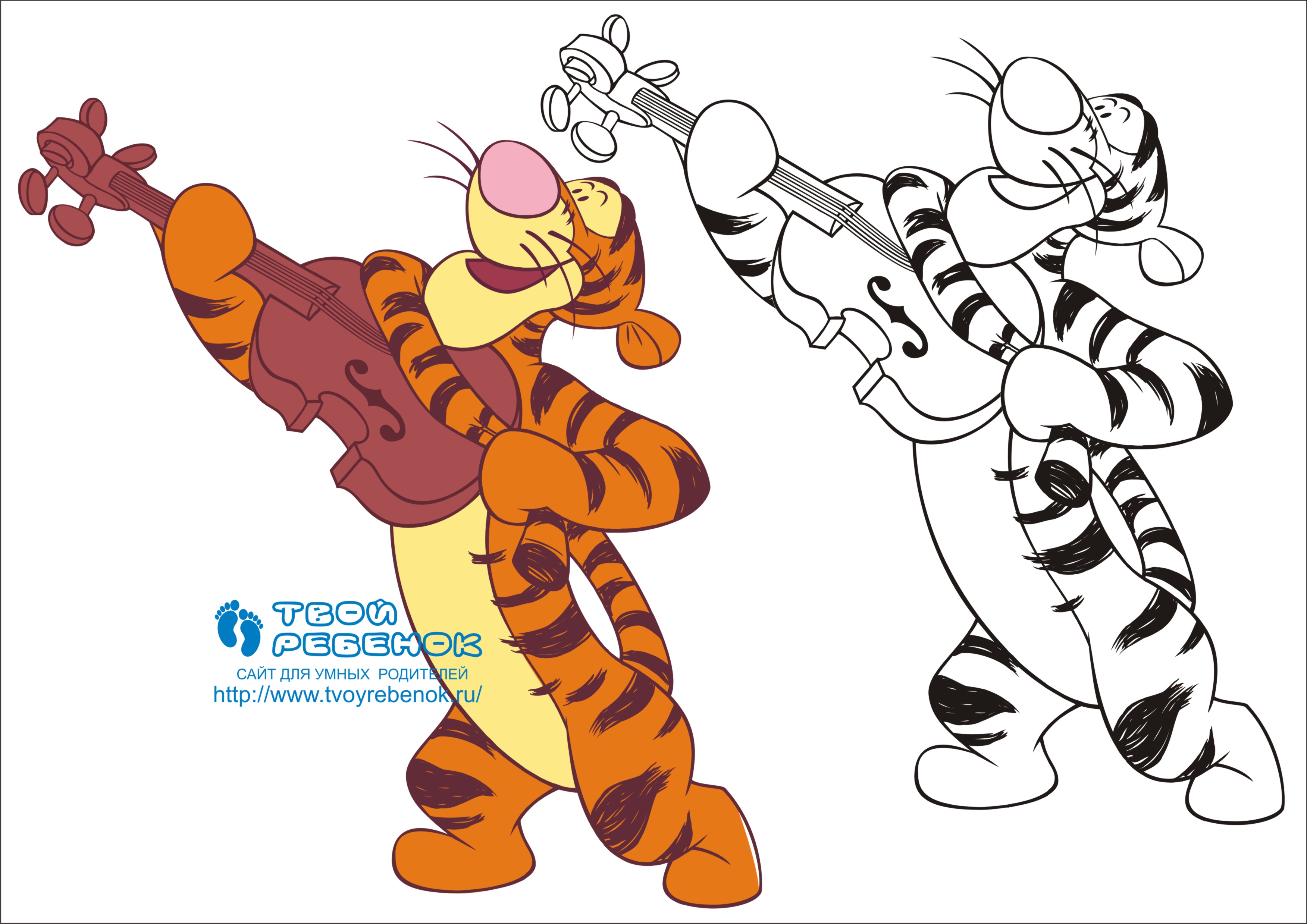 Розмальовка для дітей "Тигра грає на скрипці". Ви можете завантажити цю розмальовку безкоштовно і роздрукувати її на кольоровому принтері. |