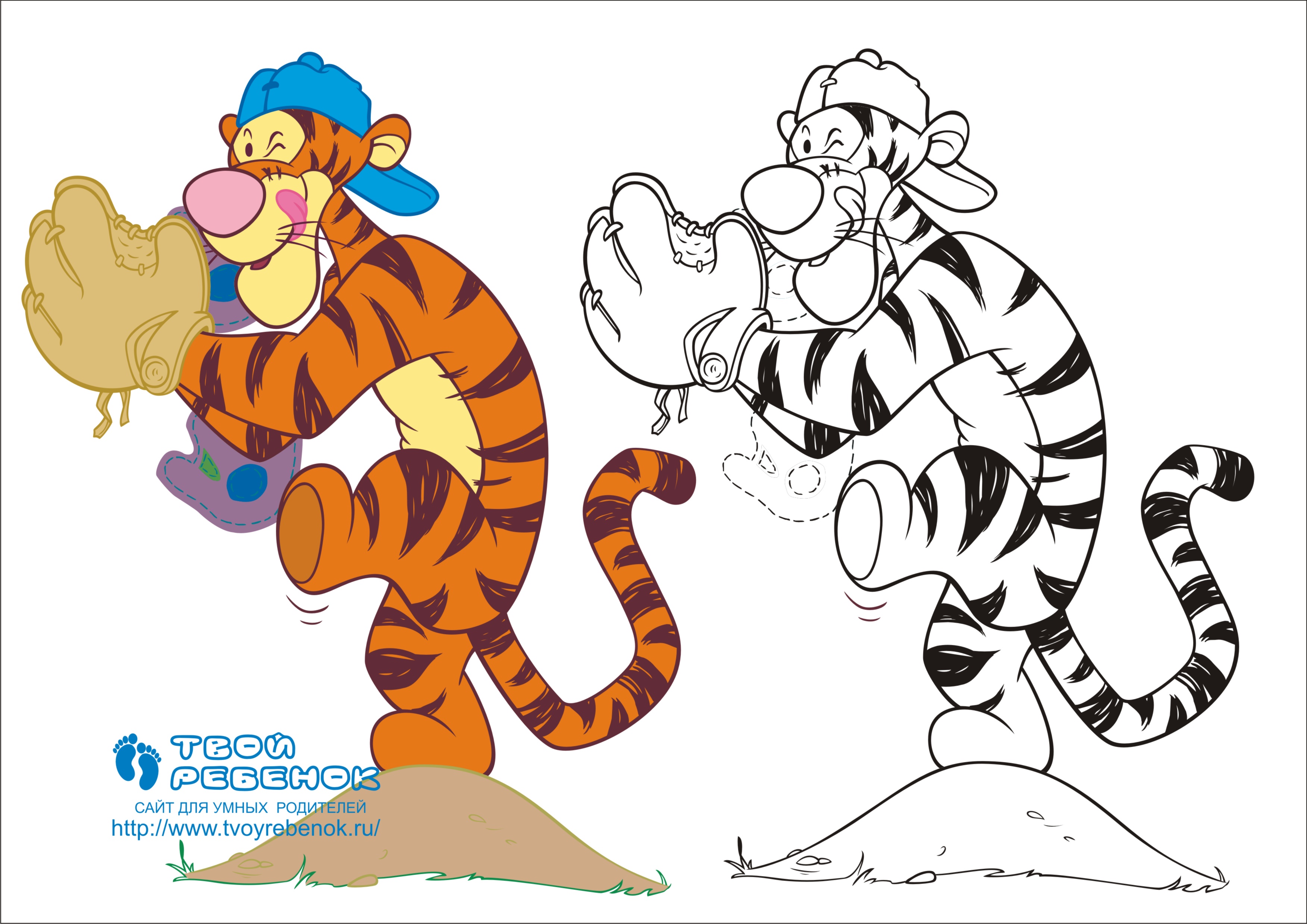 Розмальовка для дітей "Тигра грає в бейсбол". Ви можете завантажити цю розмальовку безкоштовно і роздрукувати її на кольоровому принтері. |