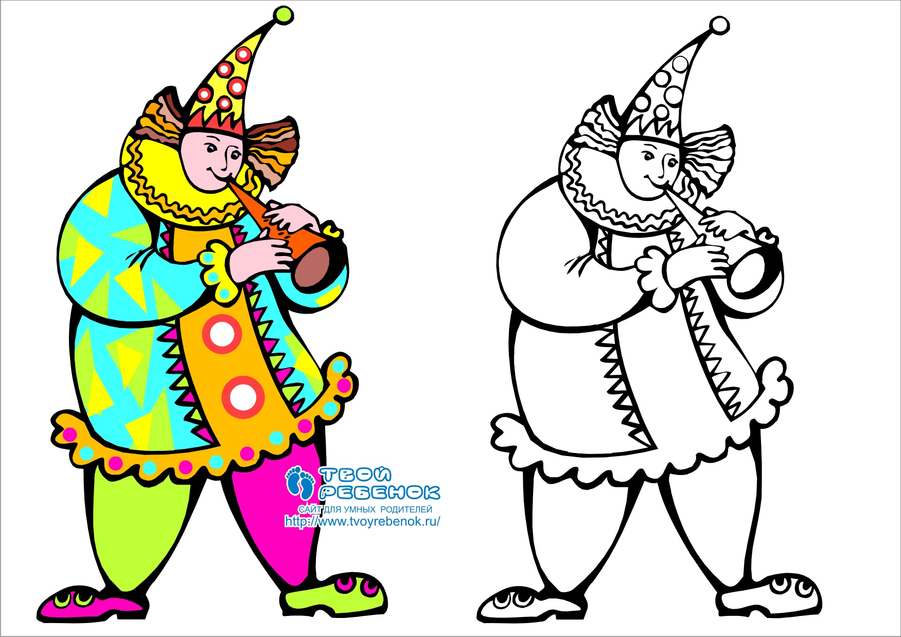 Розмальовка клоун для безкоштовного скачування. Скачайте розмальовку та роздрукуйте її на кольоровому принтері.