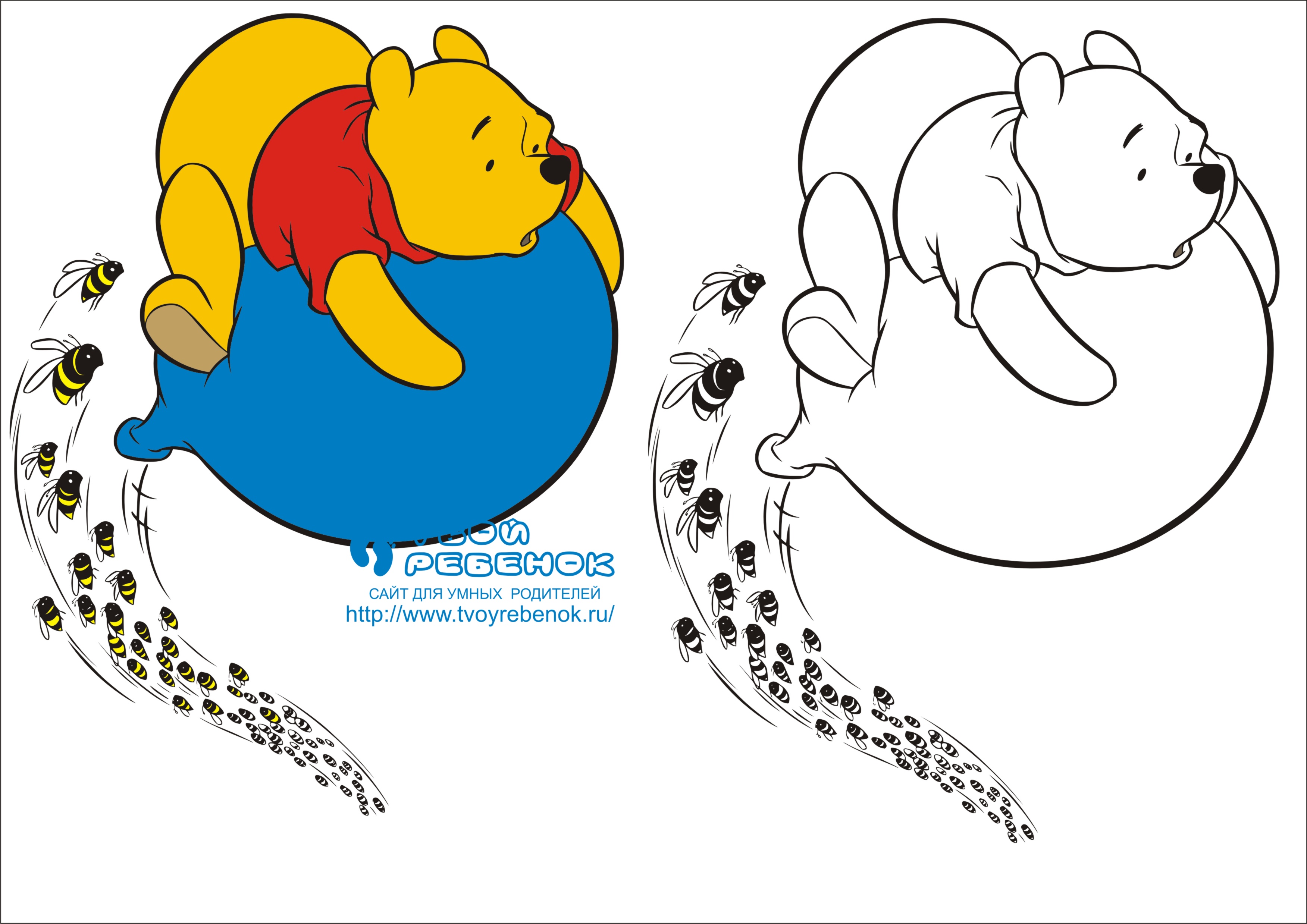 Розмальовка для дітей "Вінні Пух летить на кулі". Ви можете завантажити цю розмальовку безкоштовно і роздрукувати її на кольоровому принтері. |