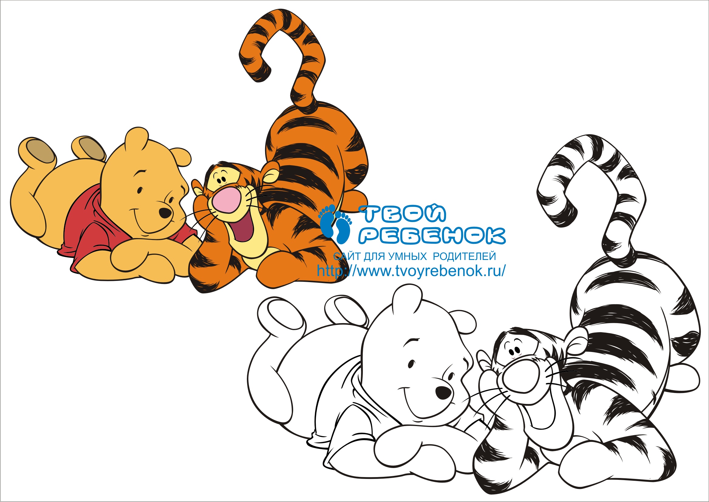Розмальовка для дітей "Вінні Пух і Тигруля". Ви можете завантажити цю розмальовку безкоштовно і роздрукувати її на кольоровому принтері. |