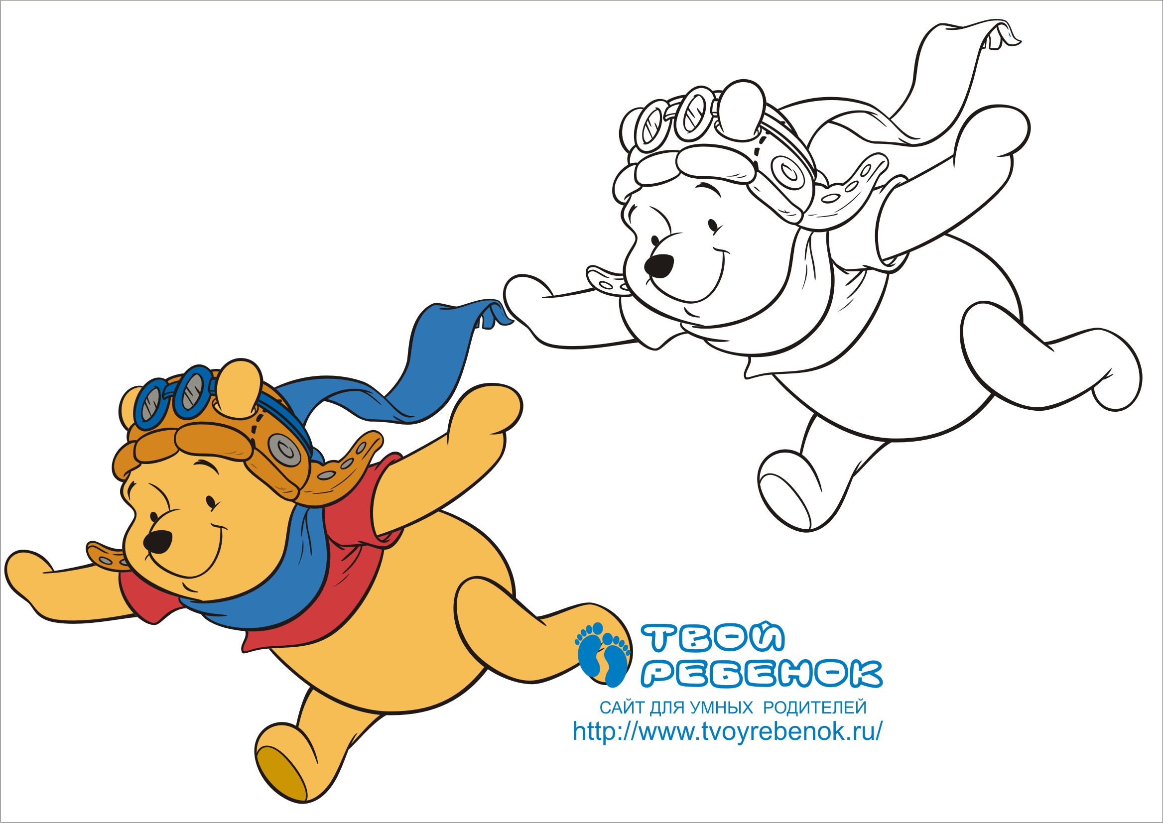 Розмальовка для дітей "Вінні Пух пілот". Ви можете завантажити цю розмальовку безкоштовно і роздрукувати її на кольоровому принтері. |