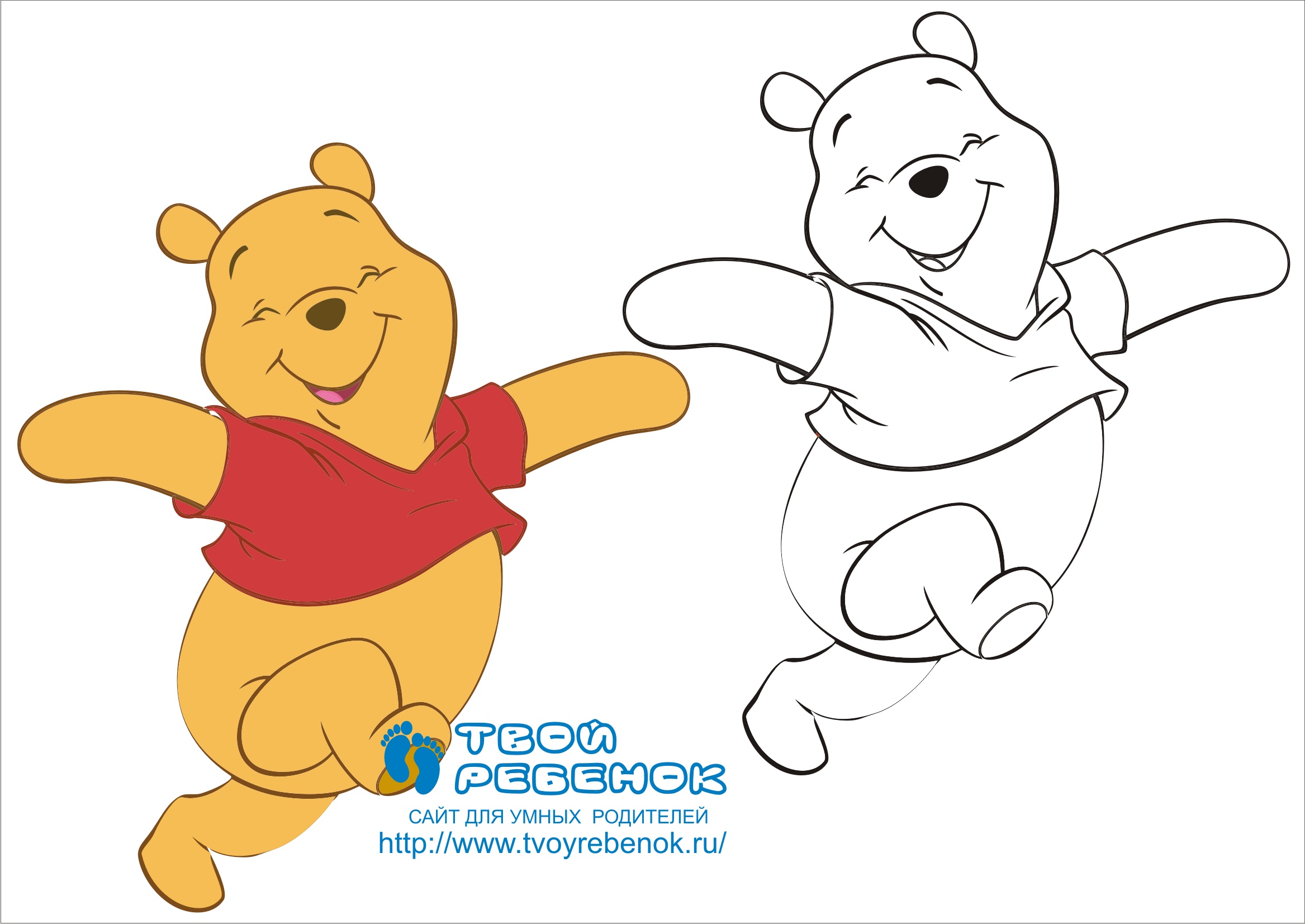 Розмальовка для дітей "Вінні Пух стрибає". Ви можете завантажити цю розмальовку безкоштовно і роздрукувати її на кольоровому принтері. |