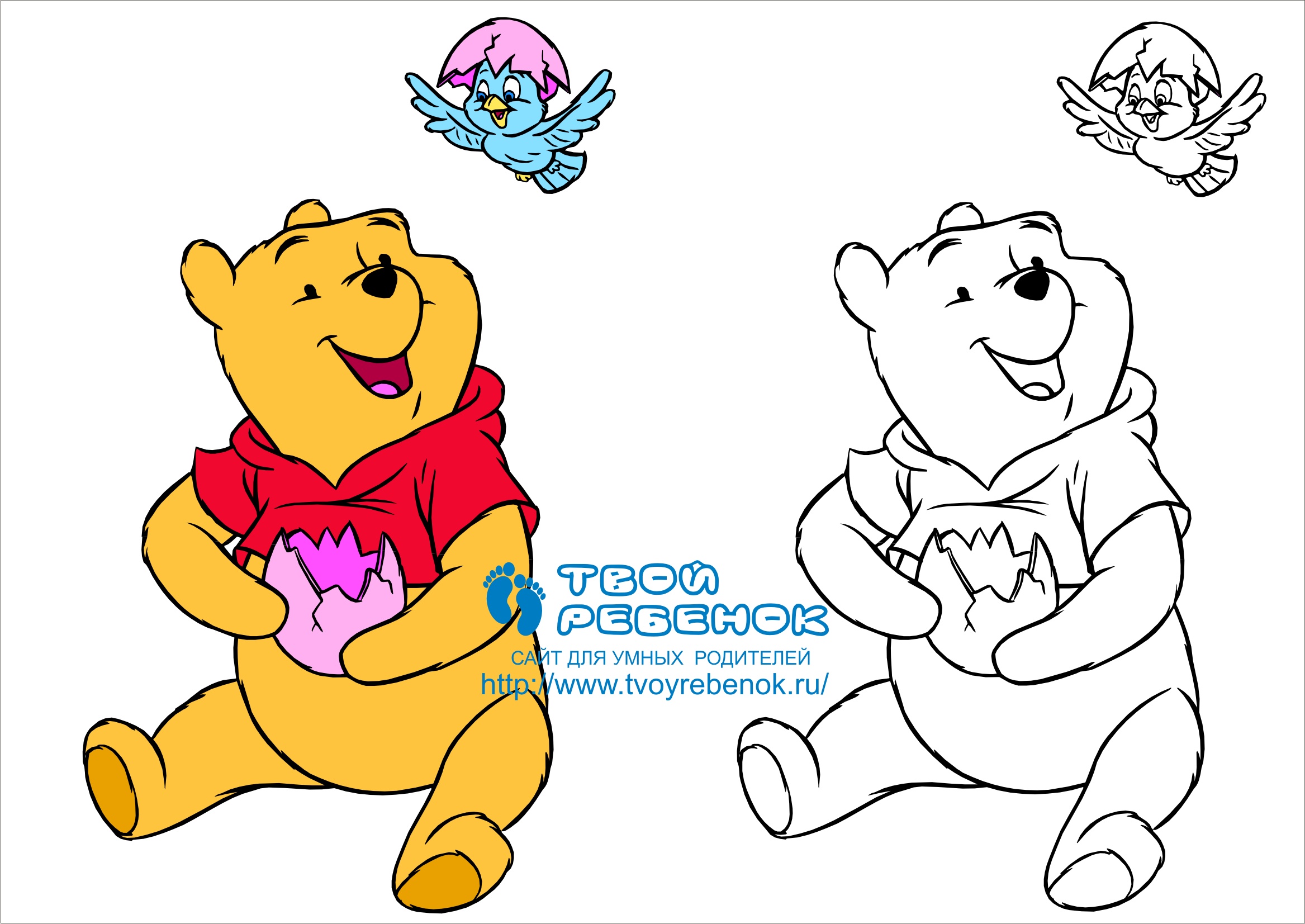 Розмальовка для дітей "Вінні Пух і птах". Ви можете завантажити цю розмальовку безкоштовно і роздрукувати її на кольоровому принтері. |