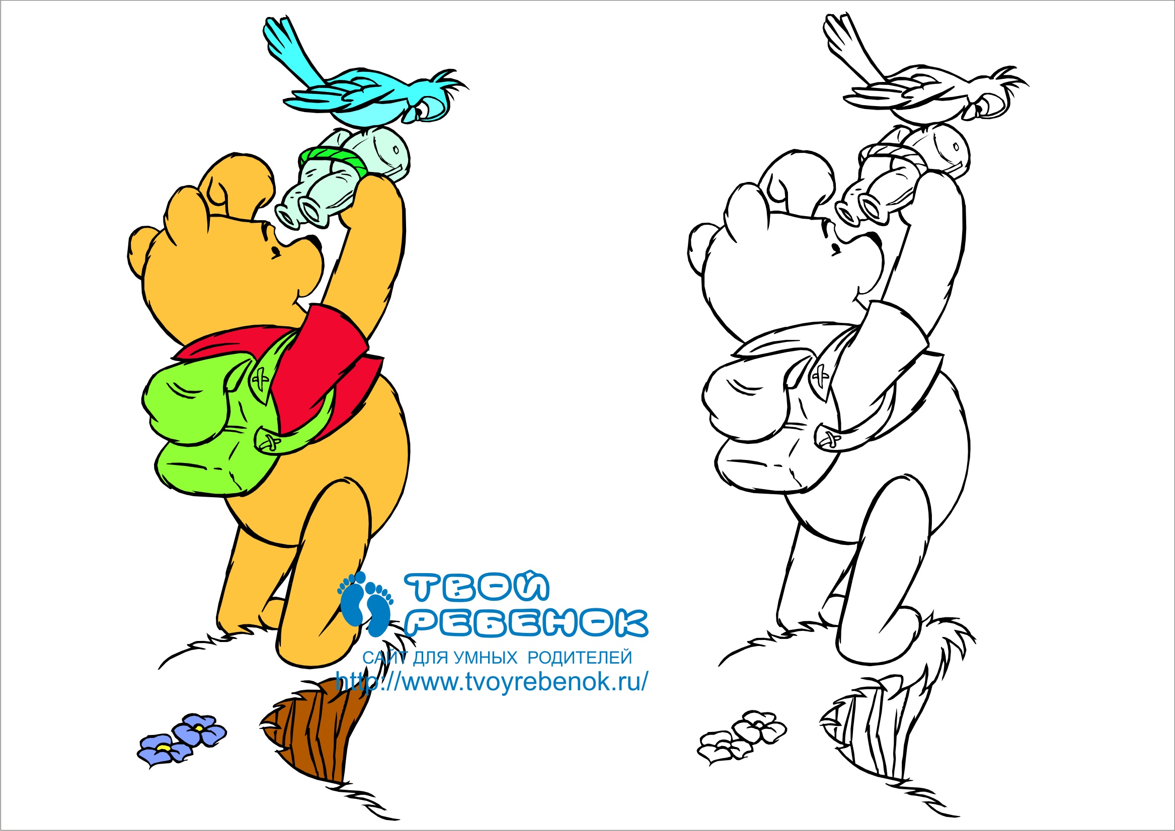 Розмальовка для дітей "Вінні Пух і птах". Ви можете завантажити цю розмальовку безкоштовно і роздрукувати її на кольоровому принтері. |