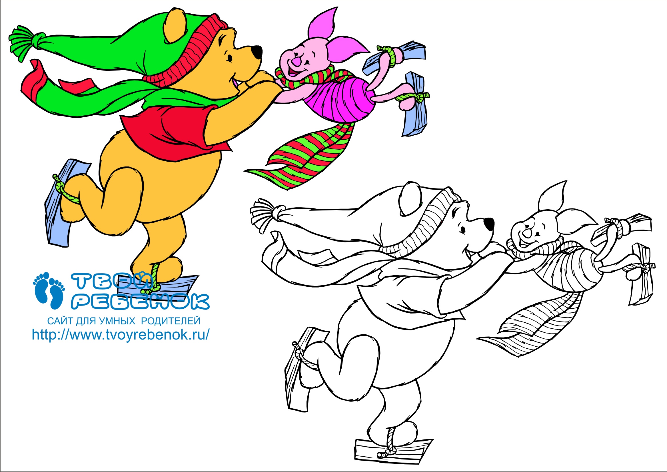 Розмальовка для дітей "Вінні Пух на лижах". Ви можете завантажити цю розмальовку безкоштовно і роздрукувати її на кольоровому принтері. |