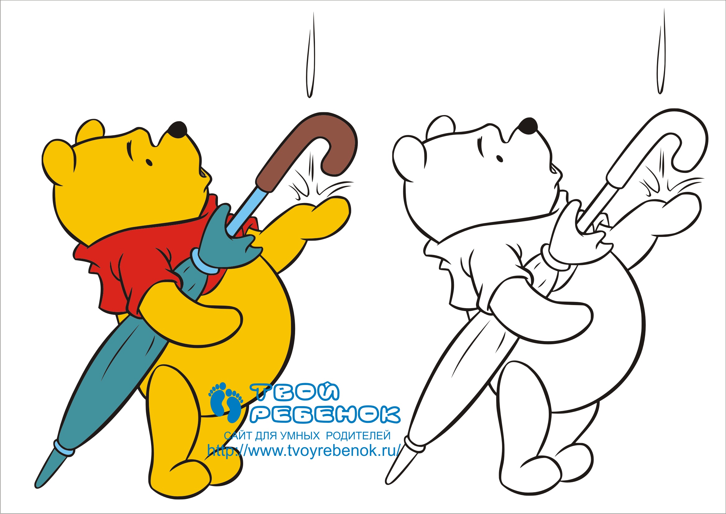 Розмальовка для дітей "Вінні Пух і дощ". Ви можете завантажити цю розмальовку безкоштовно і роздрукувати її на кольоровому принтері. |