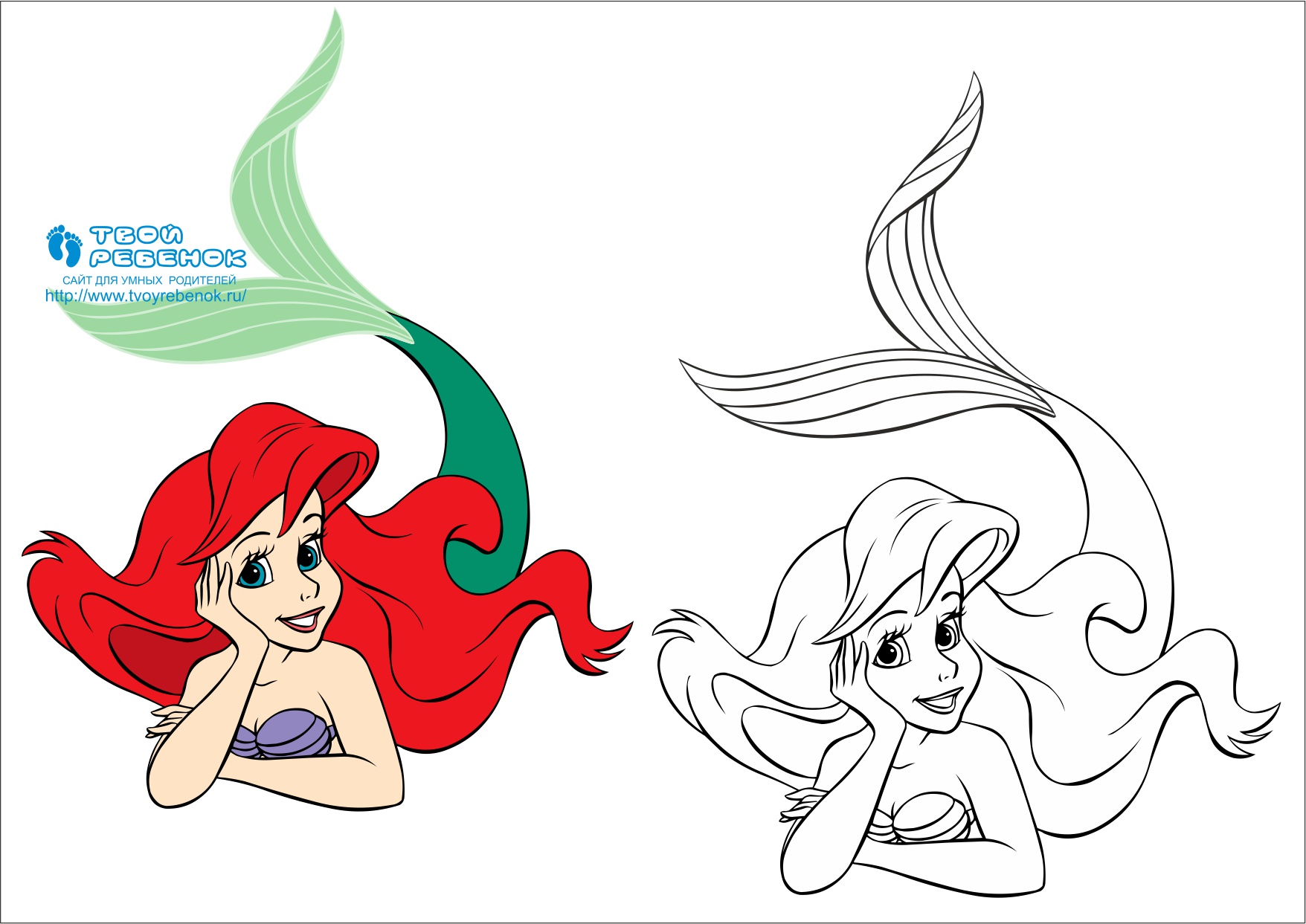 Розмальовка русалка Аріель - безкоштовно на дитячому сайті Твій ребенок.ру! Клацніть на зображення, збережіть його і роздрукуйте на принтері!