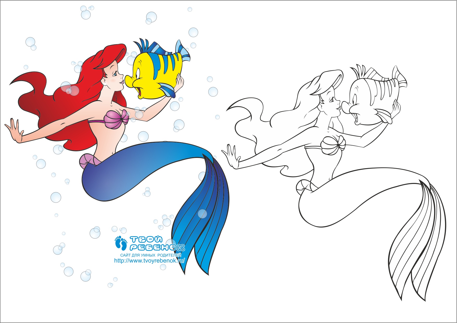 Розмальовка русалка Аріель - безкоштовно на дитячому сайті Твій ребенок.ру! Клацніть на зображення, збережіть його і роздрукуйте на принтері! |