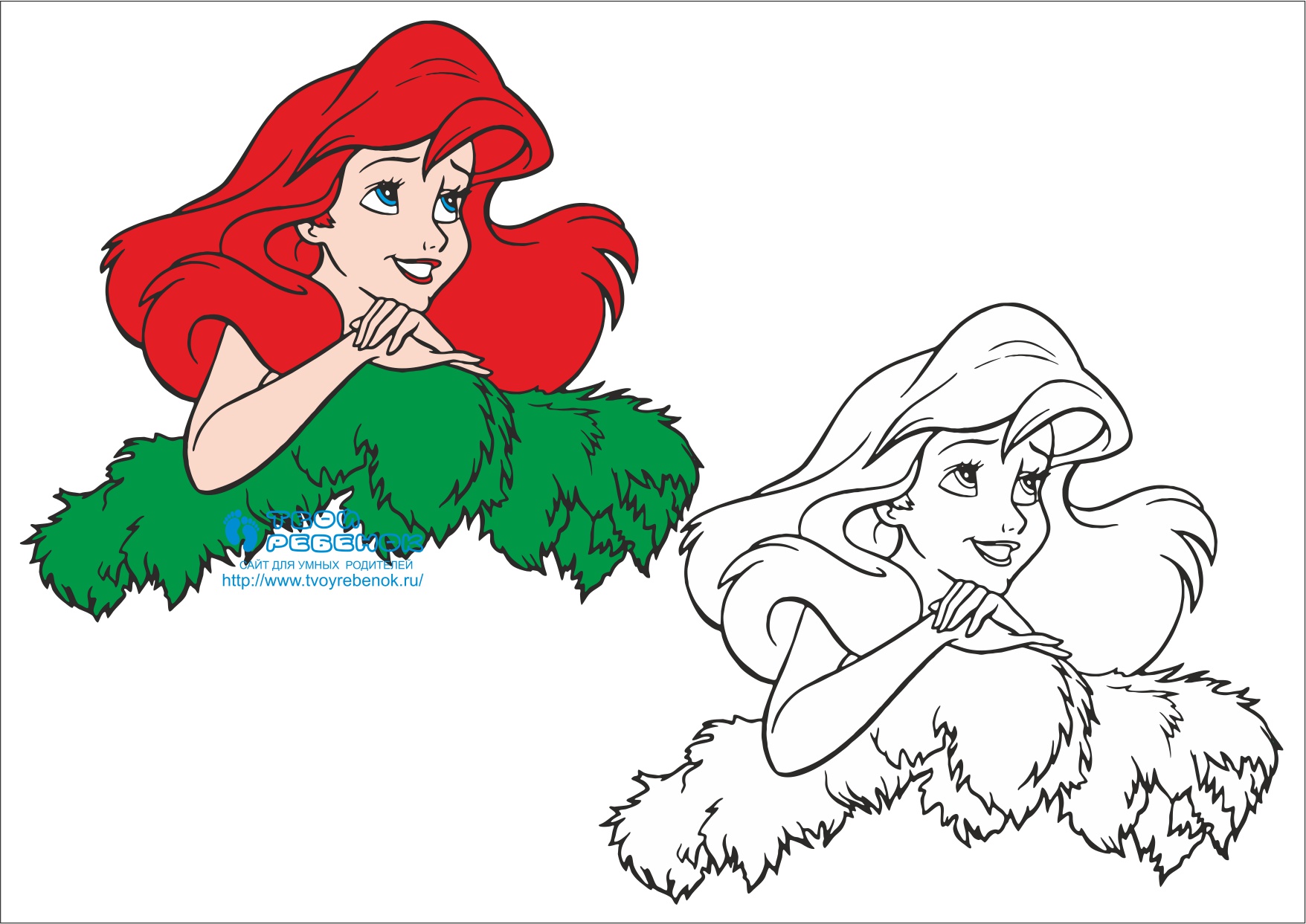 Розмальовка русалка Аріель - безкоштовно на дитячому сайті Твій ребенок.ру! Клацніть на зображення, збережіть його і роздрукуйте на принтері!