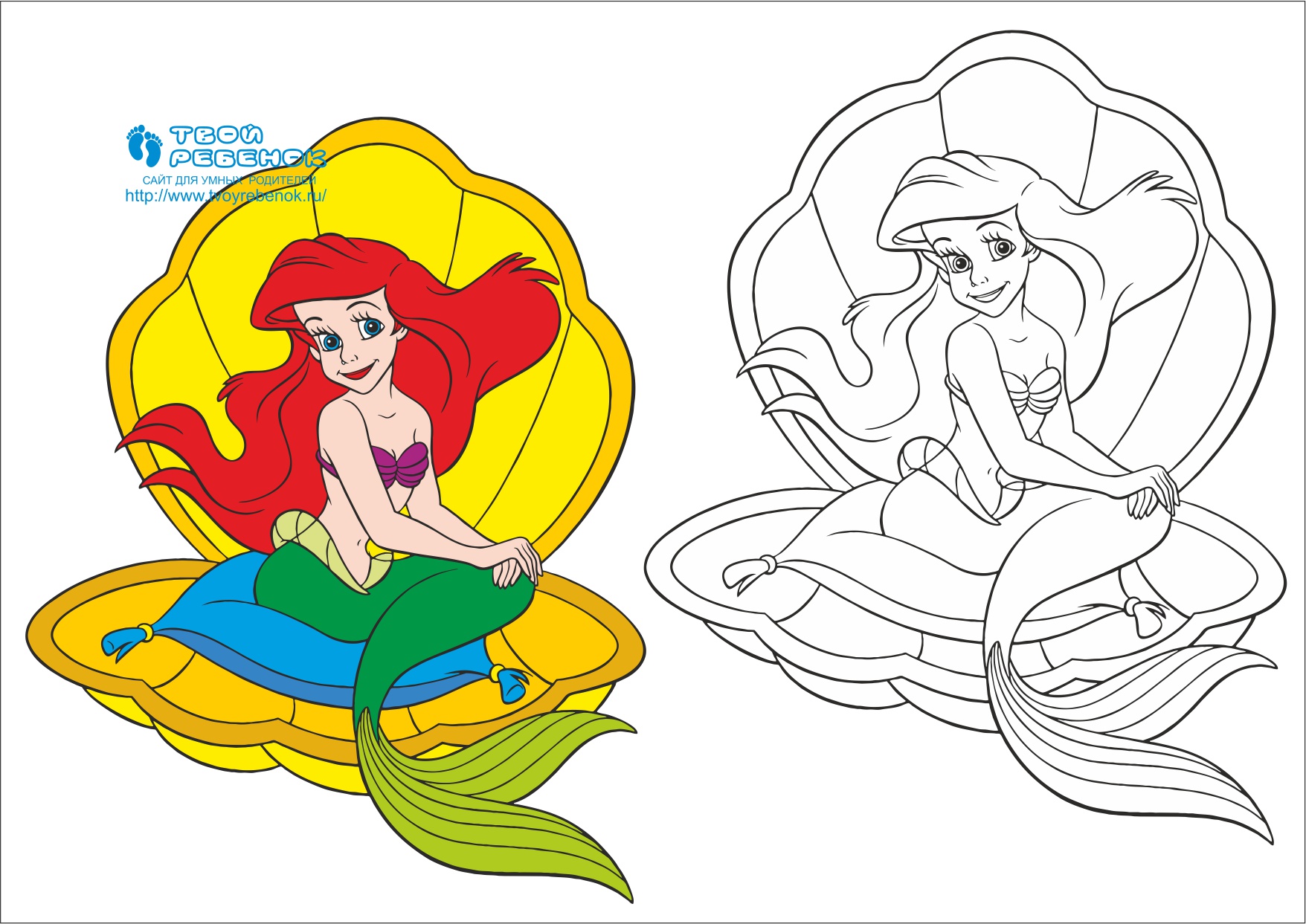 Розмальовка русалка Аріель - безкоштовно на дитячому сайті Твій ребенок.ру! Клацніть на зображення, збережіть його і роздрукуйте на принтері! |