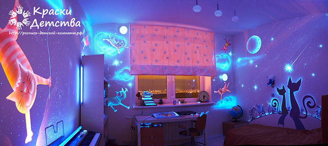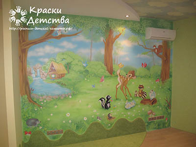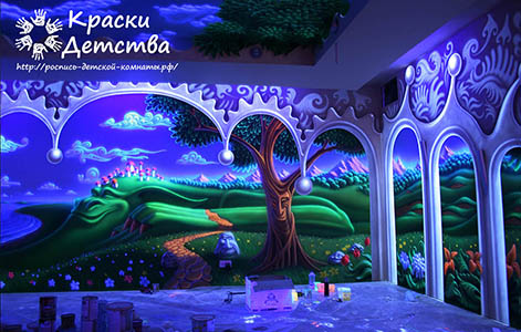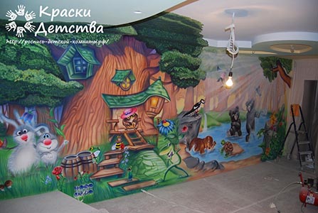 Професіонали знають: художній розпис стін в дитячій кімнаті справляє незвичайне враження не тільки на малих, а й на дорослих. Яскраві відтінки, жвавість і обсяг, повна ілюзія тривимірного простору і присутності казкових персонажів - все це робить настінний розпис унікальним прийомом оформлення інтер'єрів. Барвисті панно формують особливу атмосферу, в якій дитина відчуває себе затишно і щасливо.