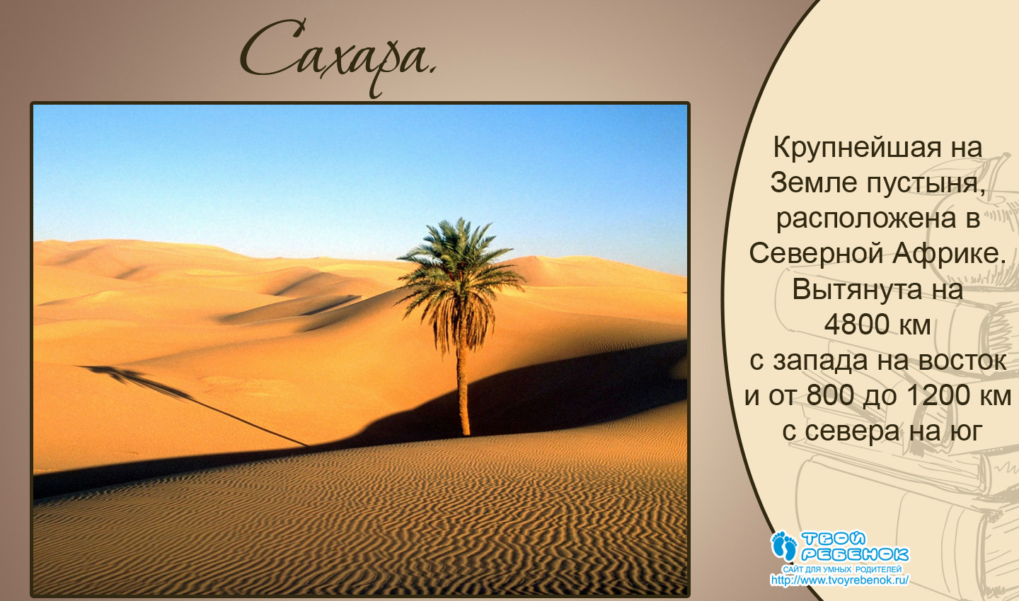 Цукру. Найбільша пустеля на Землі, розташована в Північній Африці. Витягнута приблизно на 4800 км з заходу на схід і від 800 до 1200 км з півночі на південь.