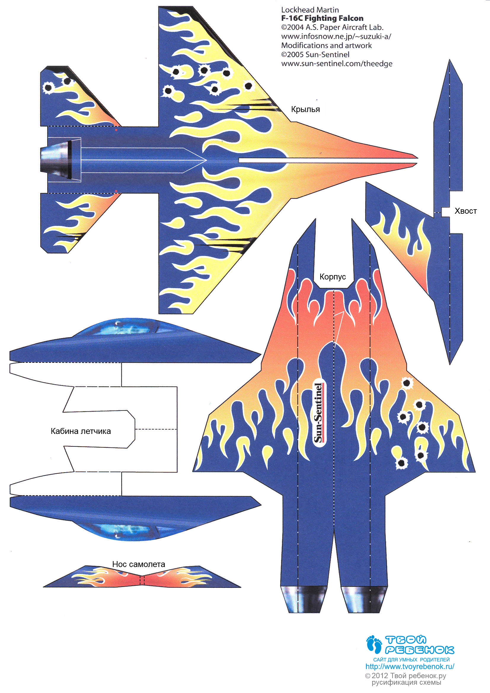 Матеріал переведений спеціально для сайту "Твій ребенок.ру", копіювання дозволяється за умови встановлення прямого зворотнього посилання на сайт "Твій ребенок.ру" і збереження логотипу проекту на макеті літака та інструкції щодо його складання.
