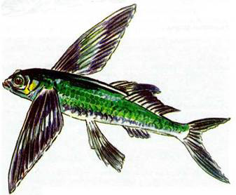У летючої риби сильно розвинені бічні плавники, з допомогою яких вона здійснює планують польоти над поверхнею моря, рятуючись від хижаків.
