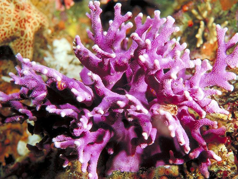 Мадрепоры. Родичі коралів так само утворені колоніями поліпів вапняної природи. Вночі вони витягають щупальця, хапаючи їжу, що складається з планктону.