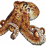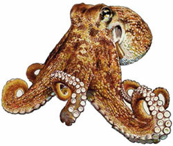 У восьминога вісім щупалець; він живе на морському дні та може змінювати забарвлення, пристосовуючись до середовища проживання.