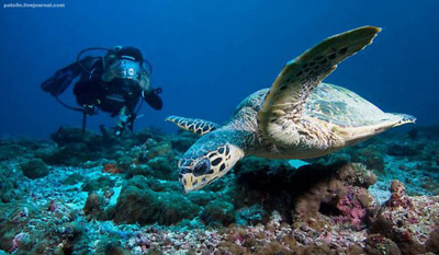 Якщо пірнути по іншу сторону рифу, в напрямку відкритого моря, може виникнути відчуття сильного запаморочення: дна більше немає - тільки вода яскраво блакитного кольору.