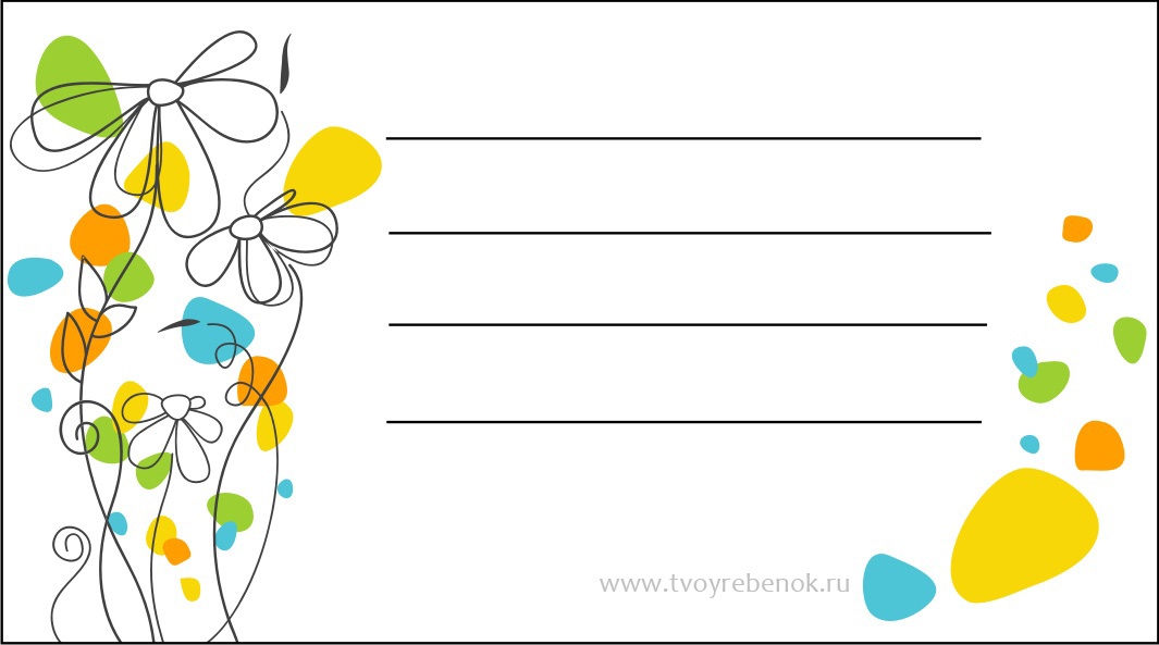 Ви можете завантажити шаблон візитки для дитини безкоштовно і роздрукувати на кольоровому принтері. Розмір візитної картки: 5 на 9 див.