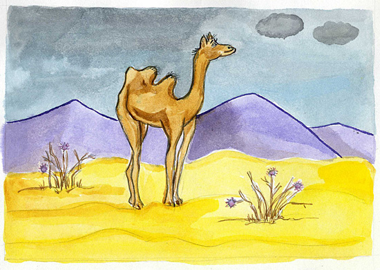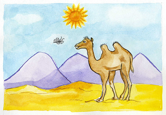 Верблюд все в житті оцінював, орієнтуючись на свої величні пагорби. Горби верблюда ми будемо називати пагорбами, тому як звучить це куди приємніше. Отже, летить, бувало, мошка назустріч верблюдові, а він озирнеться на свої пагорби, перерахує і скаже: