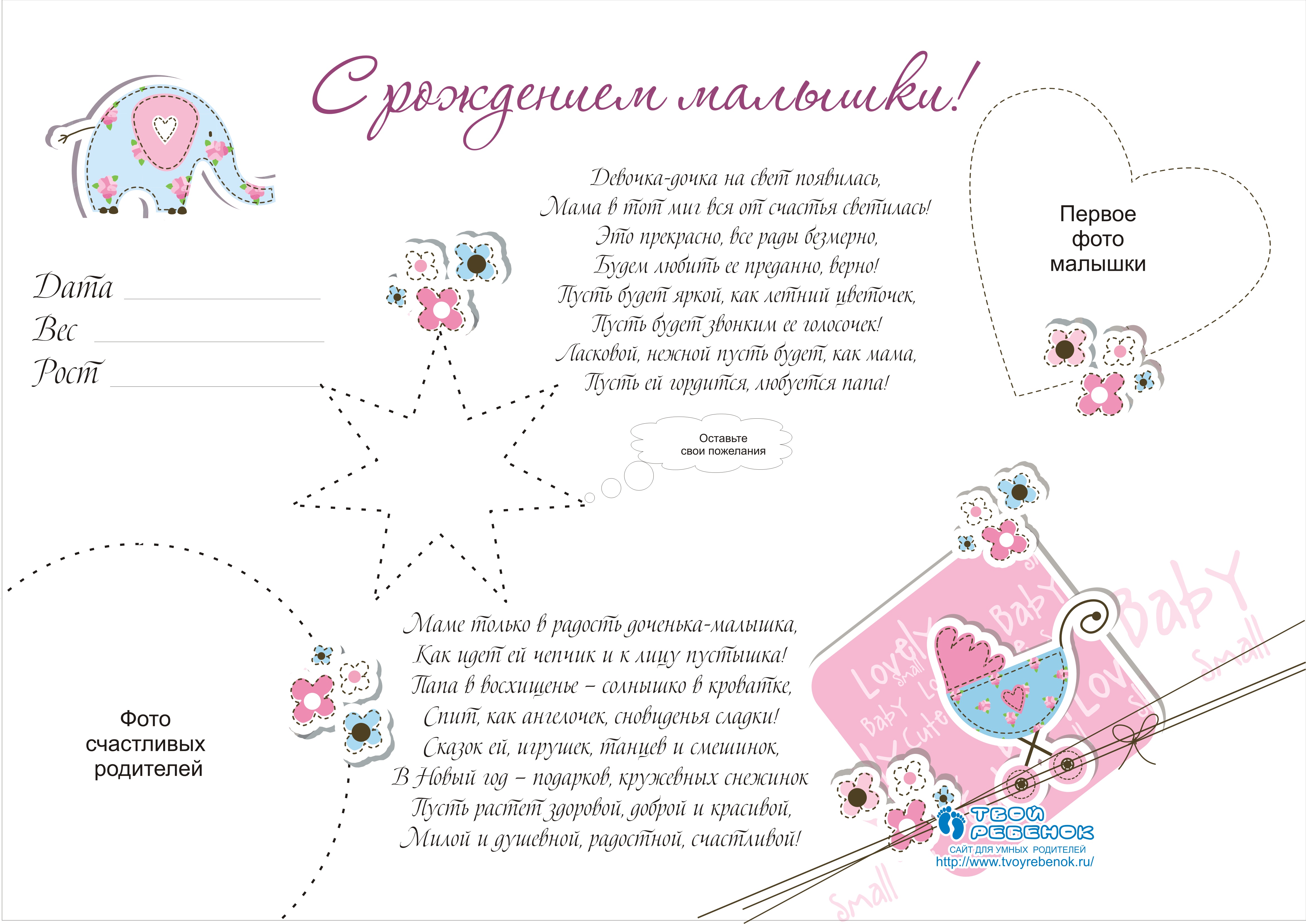 Стінгазета "З новонародженою", призначена для святкування народження дитини від дизайнера дитячого сайту Твій ребенок.ру! Скачайте стінгазету "З народженням малятка", роздрукуйте на принтері або плоттері на відповідному форматі (А1-А3).
