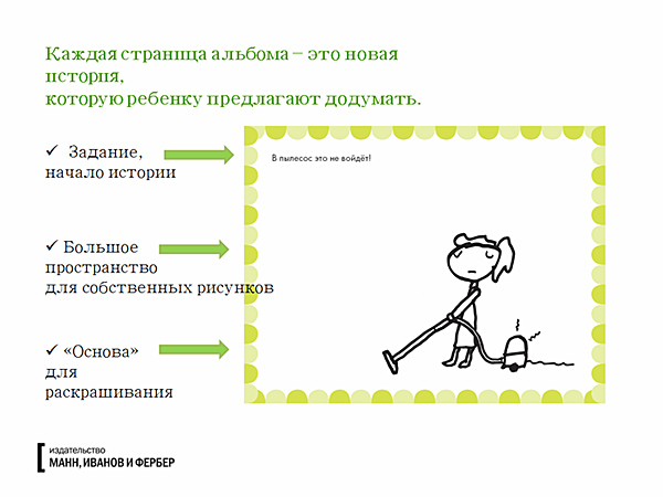 Альбоми допоможуть навчити дитину мислити креативно. Малюк зможе стати героєм цікавих історій, сценарій яких придумає сам, щоб потім всі свої пригоди розфарбувати в свої улюблені кольори.