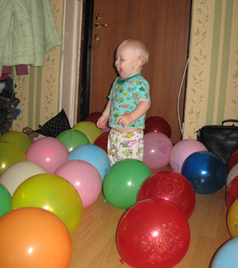 "Ось воно, щастя!" - подумав я. Моєму захопленню не було меж. Я бігав серед різнокольорових повітряних куль і заривався в них з головою. Геть забувши про сніданок))