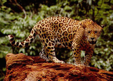 Тварина, схожа на леопарда, але більш велике; відрізняється так само особливим малюнком на шкірі: кільцеподібні темні плями, всередині яких крапками поменше. Полюють ягуари поодинці і в основному на землі, хоча добре повзають по деревах і плавають. Спіймавши здобич, хижак зазвичай ховає її де-небудь у потаємному місці і потім з'їдає по частинах.