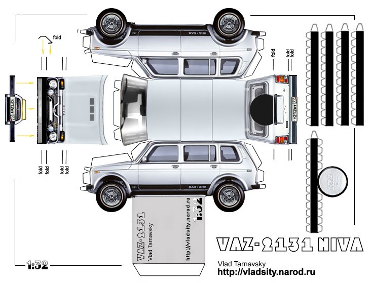 ВАЗ 2121 з паперу - російський позашляховик для паперового моделювання. Роздрукуйте схему на кольоровому або чорно-білому принтері, зігніть і склейте. Модель виконана в масштабі 1:32 і дуже реалістична.